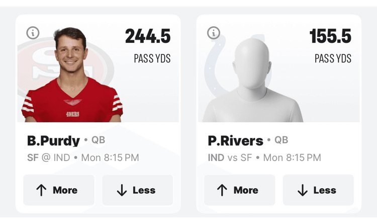 This is a low passing number, but San Francisco’s pass rush and coverage discipline make it difficult for opposing quarterbacks to sustain drives through the air. Expect Indianapolis to lean run-heavy, making Less the stronger side.