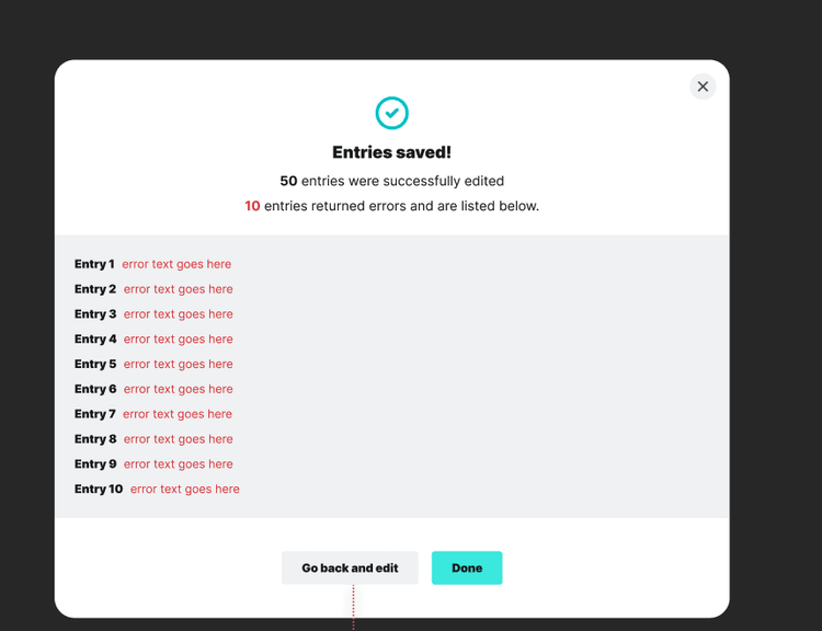 If your CSV upload was only partially successful, we make the correction process as smooth as possible. The "go back and edit" button allows you to download the exact CSV file you previously uploaded, complete with your picks intact.