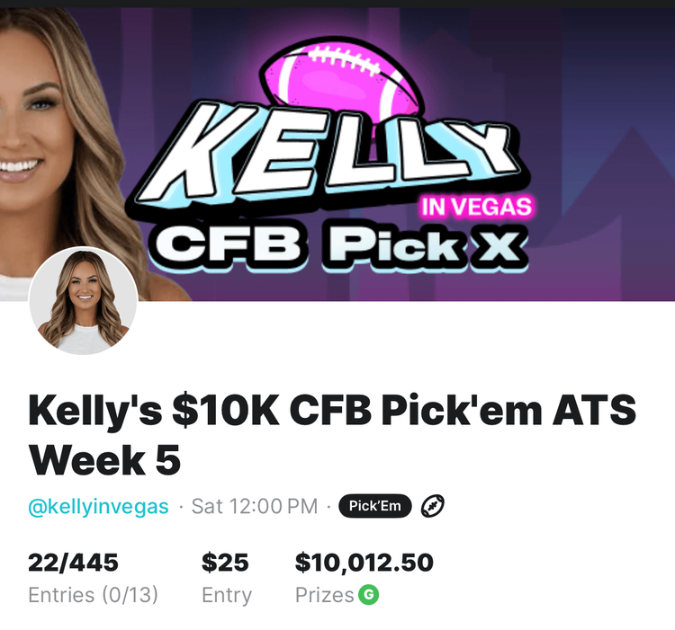 Kelly's $10K CFB Pick’em ATS Week 5