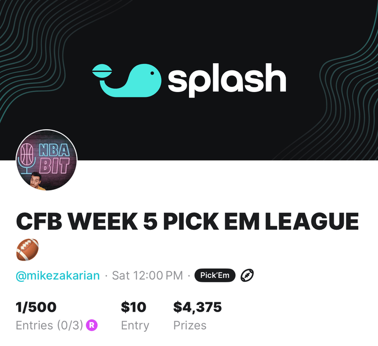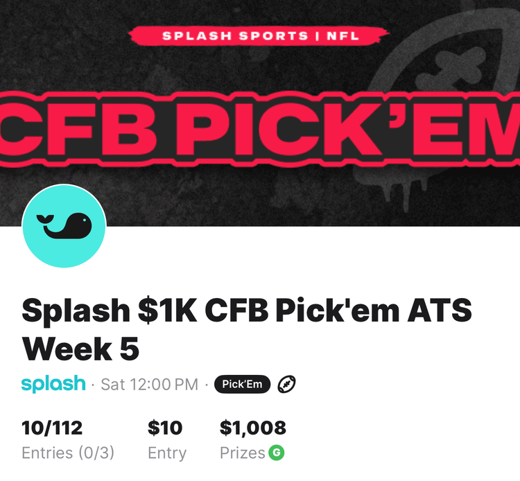 Splash $1K CFB Pick’em ATS Week 5