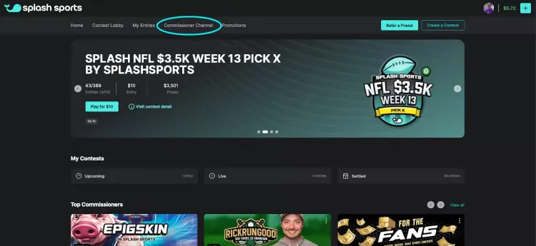 Start your journey as a commissioner on Splash by creating your commissioner channel. After creating your account, navigate to the Commissioner Channel tab to get started.