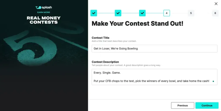Don't limit yourself to just one contest. Try hosting multiple contests for different bowl game groups to maximize your earnings potential. Check out our Knowledge Center for more tips on how to maximize your Splash Sports reward earnings.