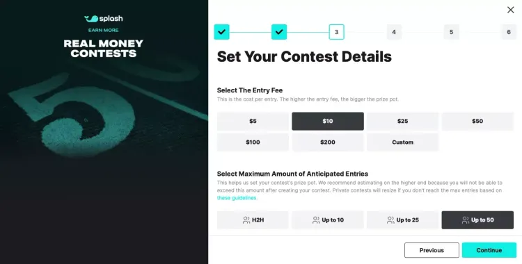 Determine the entry fee for your contest and decide on the size of the contest based on our pre-selected options. These factors are crucial in determining the potential earnings from your contest.