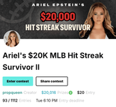 Ariel’s $20K MLB Hit Streak Survivor II is a standout option for players looking to test their strategy in a high-upside format. With over $20,000 in guaranteed prizes and a $20 entry fee, this fantasy contest offers a strong balance of accessibility and competitive reward.