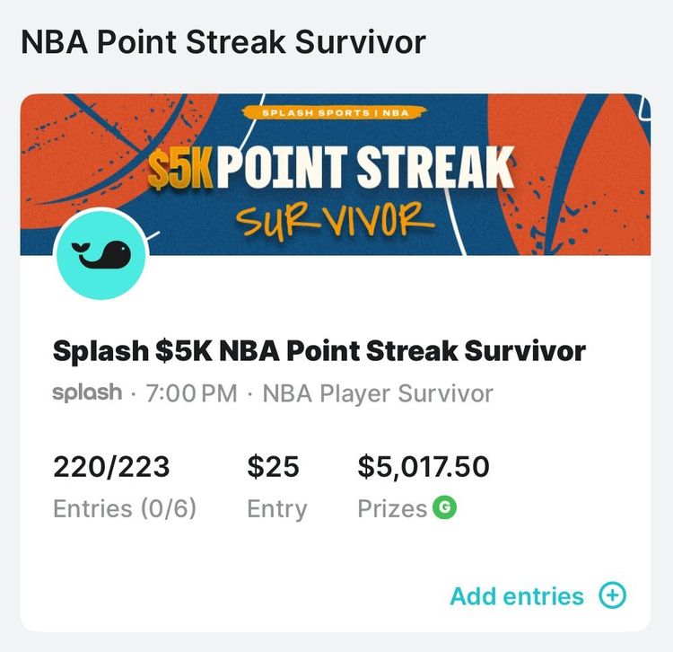 - You join a fantasy contest labelled “NBA Point Streak Survivor”.