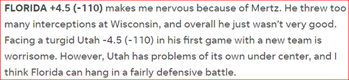 Utah’s defense did exactly enough to win this game, and Florida’s offense did not do nearly enough to challenge them. In picking the game, USA Today hedged its bets, writing: